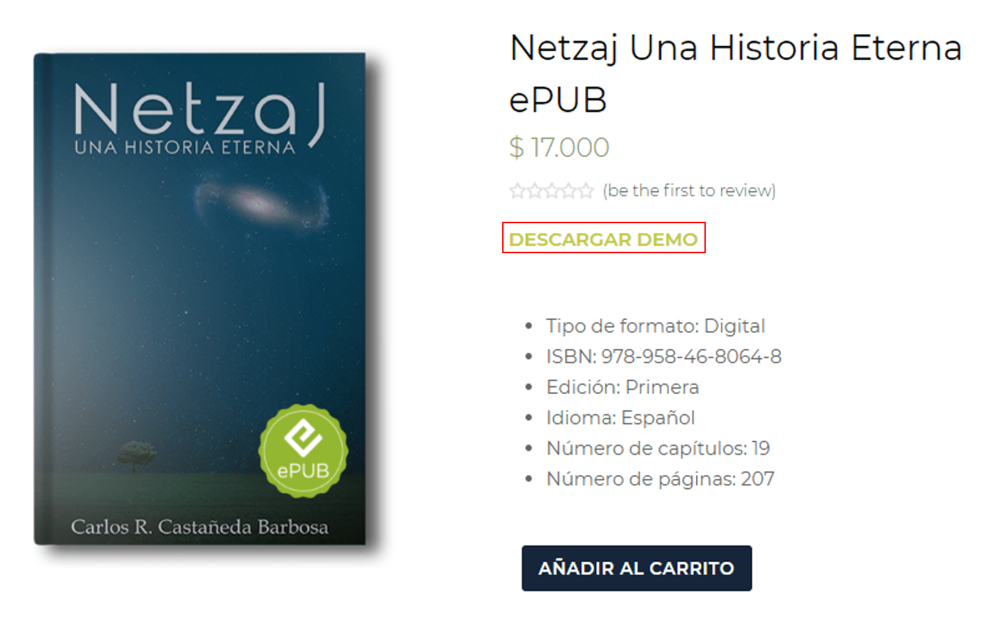 - Selecciona el libro de interés, podrás descargar el demo, haciendo clic en la opción DESCARGAR DEMO que se encuentra en la descripción del libro, como se muestra a continuación.