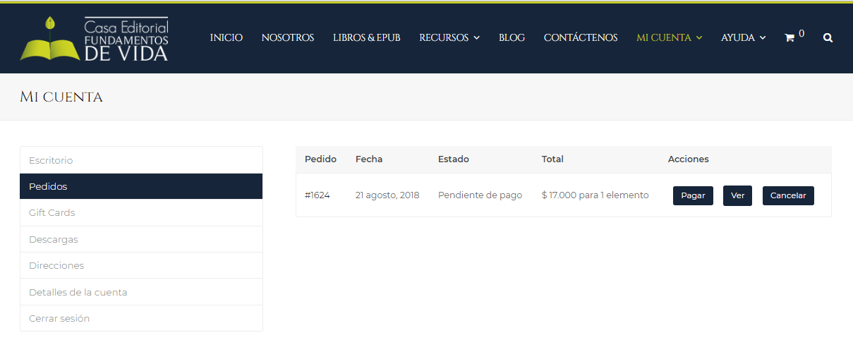 A su correo llegará la notificación de compra y detalles del pedido, una vez se haya aprobado y verificado el pago podrá acceder a los libros que ha adquirido.