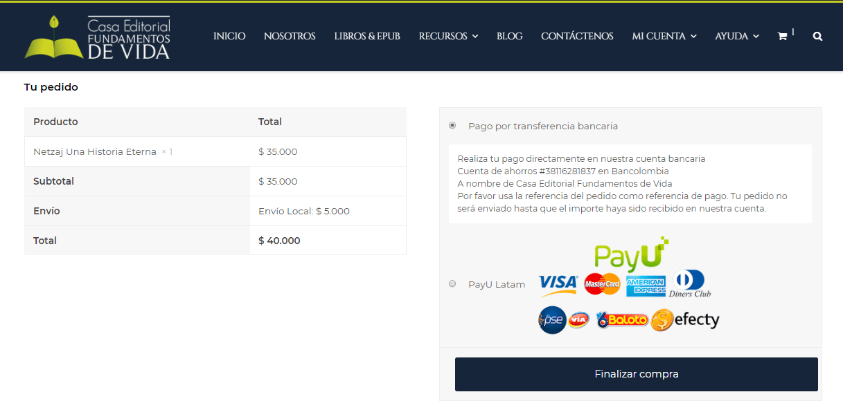 A su correo llegará la notificación de compra y detalles del pedido, una vez se haya aprobado y verificado el pago se procederá con el despacho de los libros.