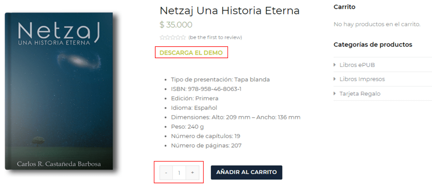 • Selecciona el libro de interés, podrás descargar el demo, haciendo clic en la opción DESCARGAR DEMO que se encuentra en la descripción del libro, como se muestra a continuación.
